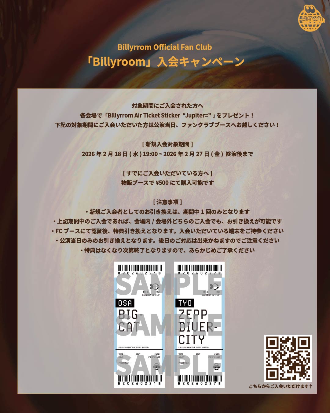 Official Fan Club 「Billyroom」 Billyrrom Asia Tour 2026 “Jupiter=“ 連動企画開催決定!!